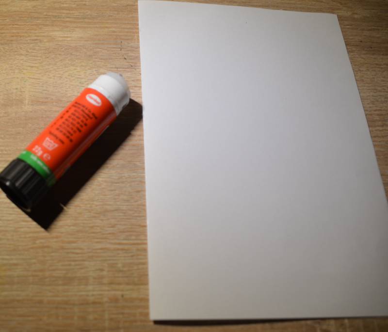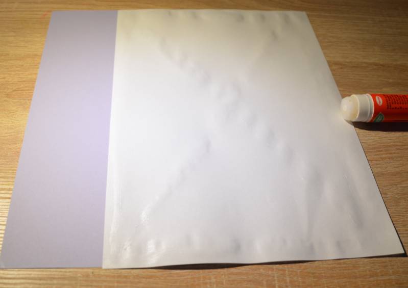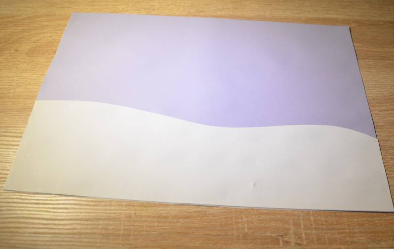 Stap1: Plak het eerste witte blad op het paarse of blauwe blad.