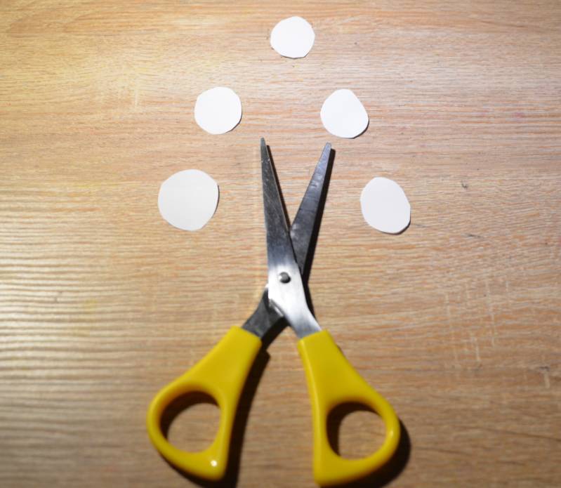 Stap7: Nu doe je hetzelfde met het wit papier. Let wel op dat de witte ovaaltjes kleiner zijn dan de zwarte.