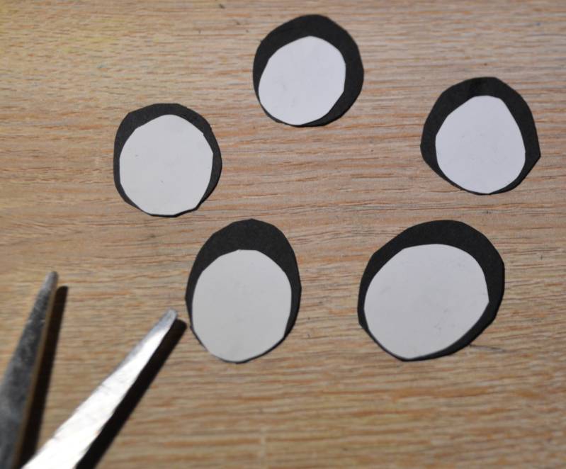 Stap6: Knip een paar ovaaltjes uit het zwarte papier.