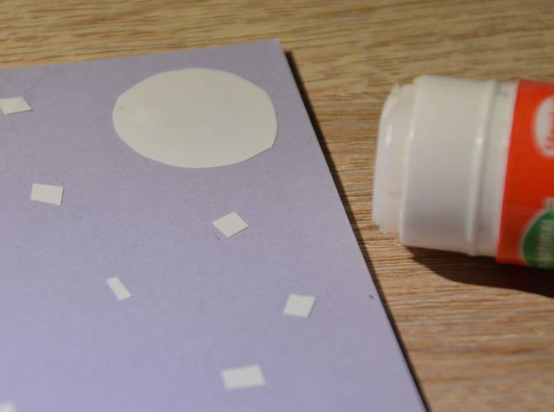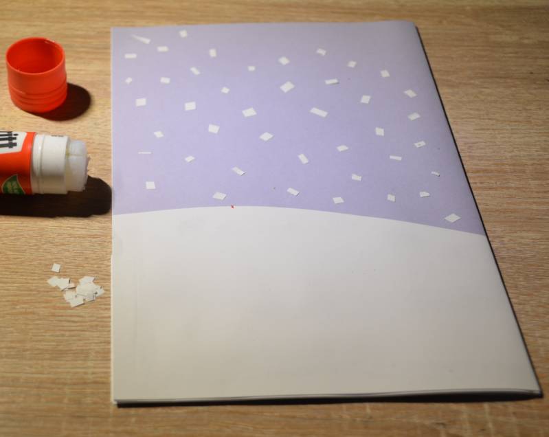 Stap13: Knip een aantal kleine vlakjes uit het witte papier.