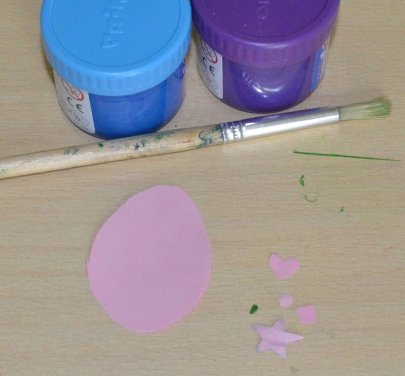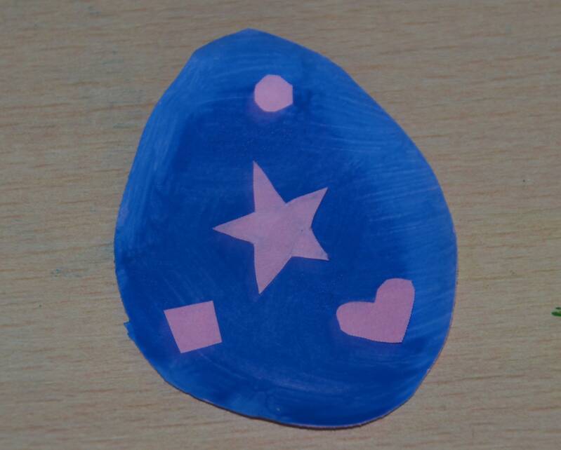 Stap3: Nu schilder je opnieuw heel het ei. Schilder ook over de stikkers of papiertjes.