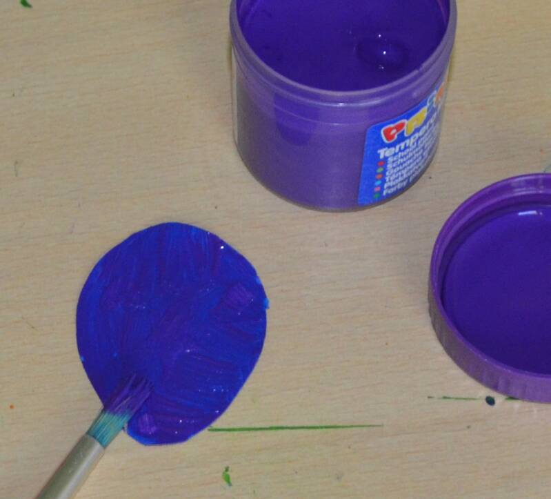 Stap2: Als je verf droog is plak je de stikkers er op of leg je de papiertjes er op.