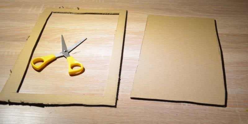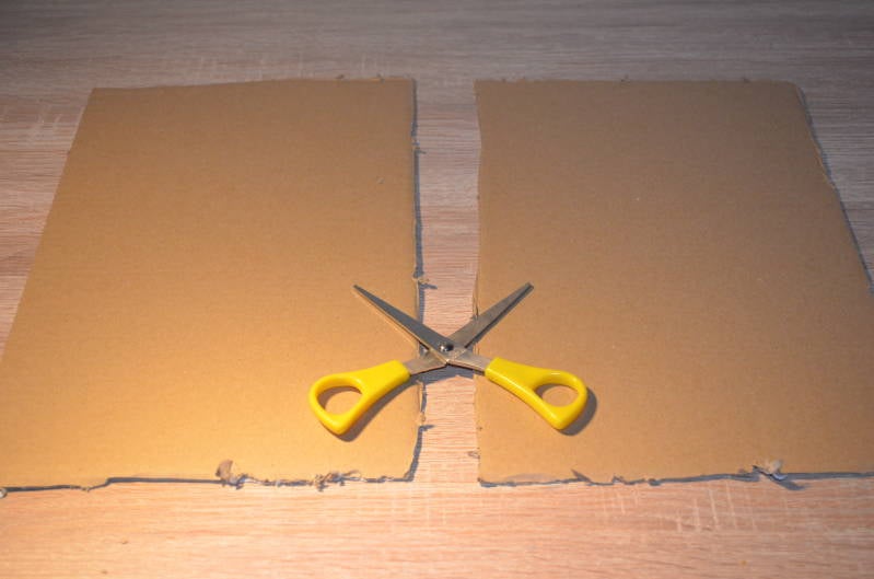 Stap1: Knip uit het karton twee grote rechthoeken.