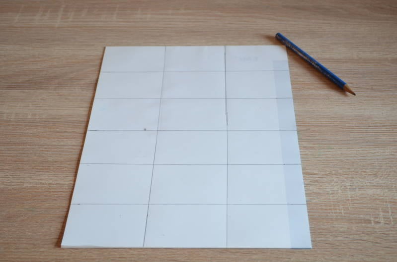 Stap6: Teken met potlood een ruitjespatroon op het papier.