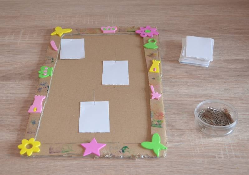 Stap8: Met de speldjes kun je de papiertjes op het bord spelden.