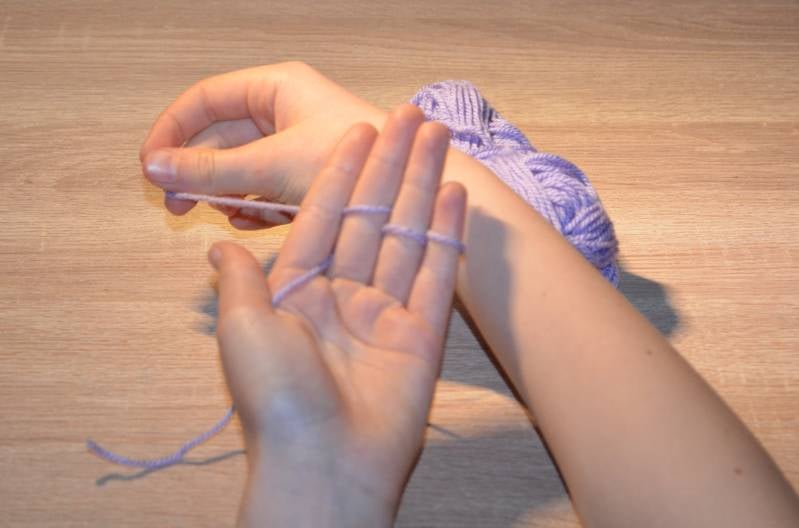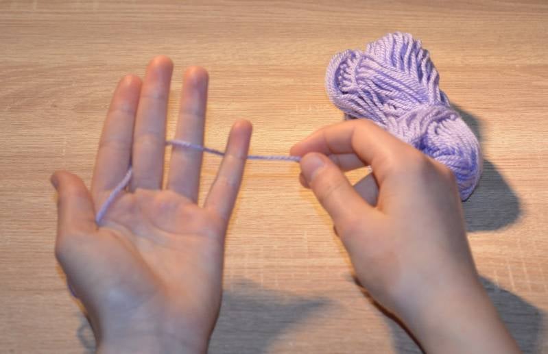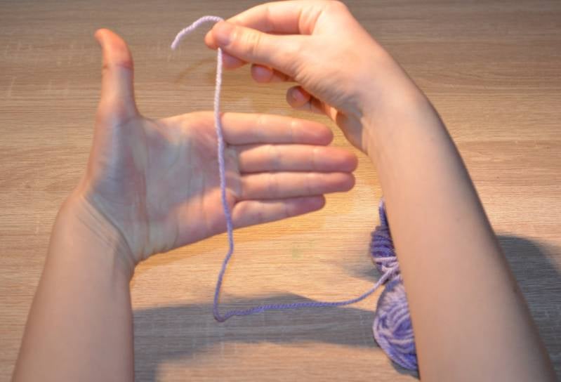 Stap2: Leg de draad tussen je duim en wijsvinger met het einde van de draad naar buiten.