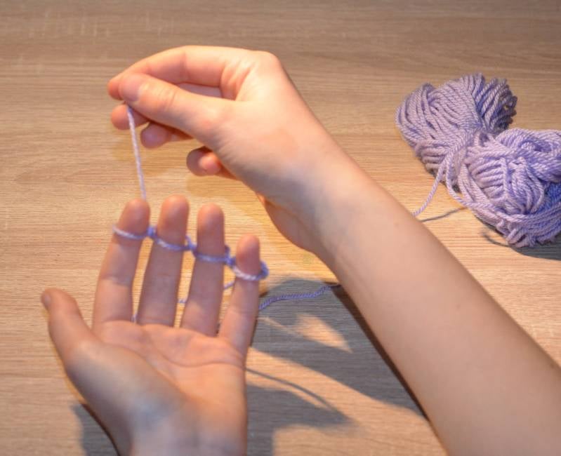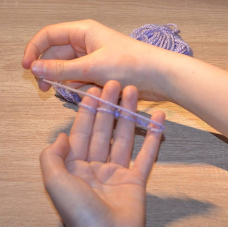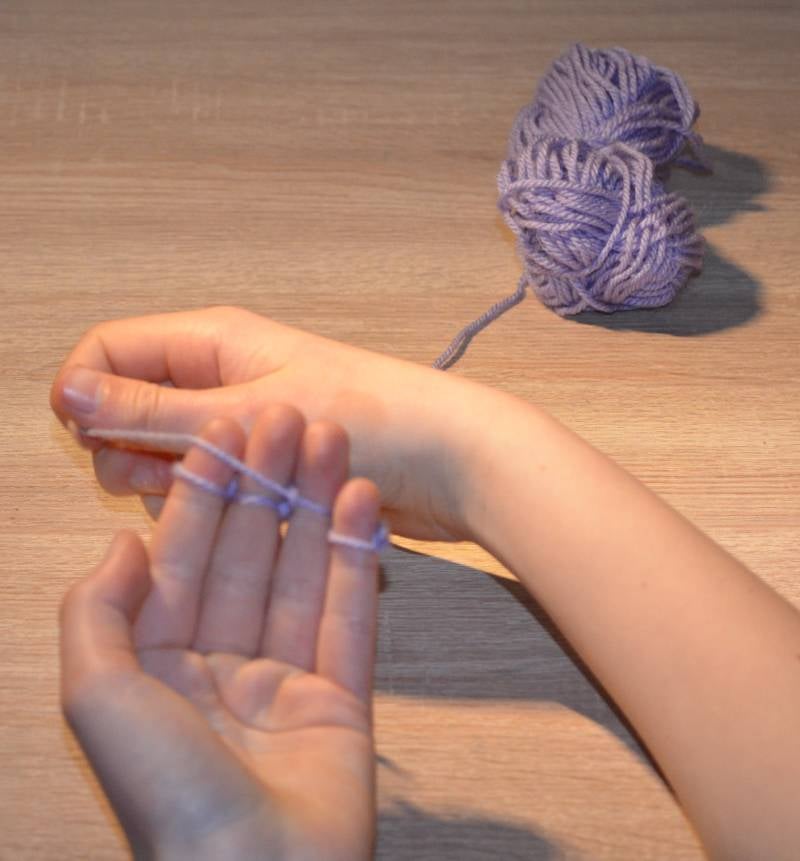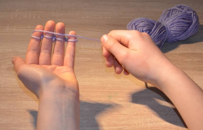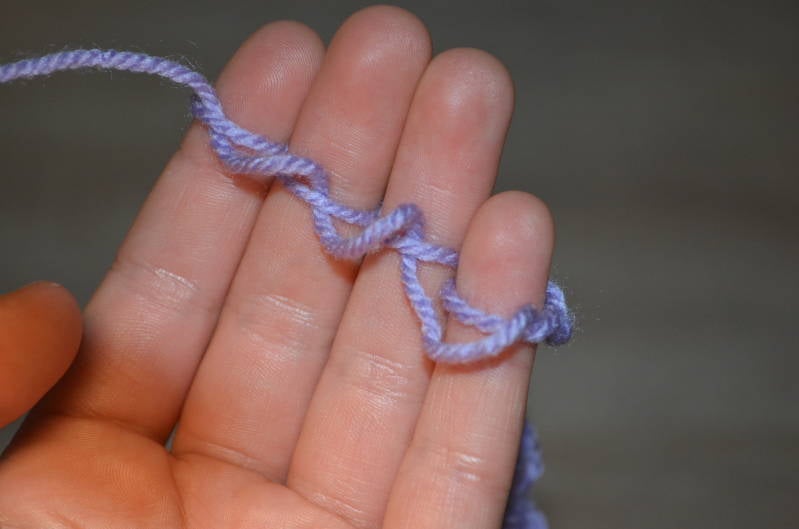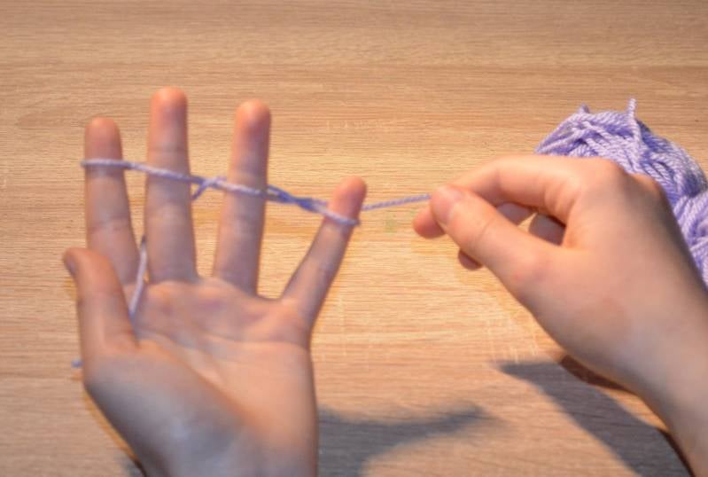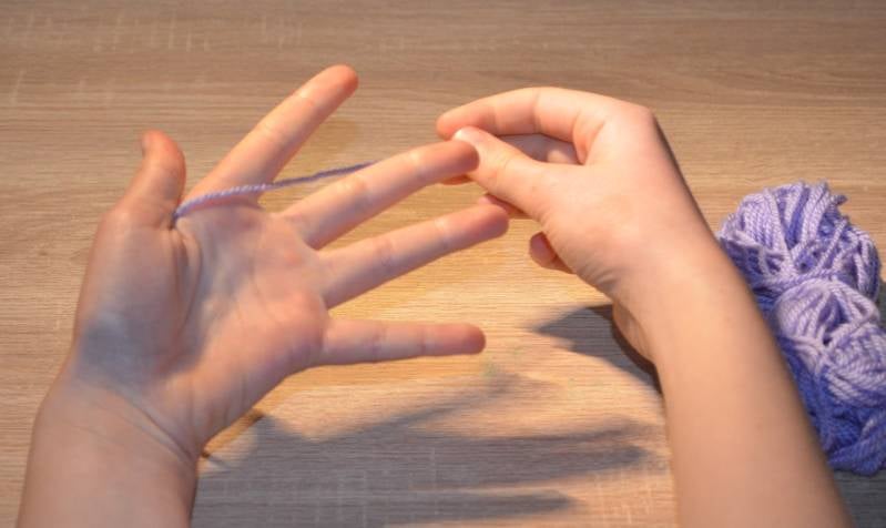 Stap4: Ga met je draad onder je ene vinger door, boven de volgende vinger en onder je pink.