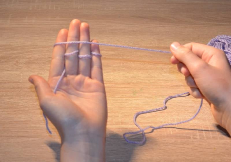 Stap5: Ga nu met je draad over je pink, onder ringvinger, over je middelvinger en onder je wijsvinger door.